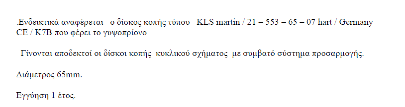 Η προσφορά σας να είναι σύμφωνη με το συνημμένο αρχείο. Δίσκοι κοπής 65mm συμβατοί με το ηλεκτρικό πριόνι κοπής γύψου TUV, STUTTGART GS, geprufte sicherheit